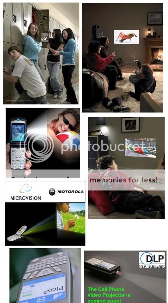PicoP in expansion of future project its will work along with company mobile phone MOTOROLA to countersink the PicoP technology into mobile phone of motorola. The side of Motorola self also had agreed if their mobile phone they will be countersinked laser technology PicoP because will assist the users their mobile phone to do presentation and demo, but unhappily has not been known surely when Motorola will start markets capable mobile phone of projector laser. And have time to be estimated mobile phone will emerge in marketing in the year 2009 coming. Where as MICROVISION company also accessories design for projector PCs and game consoles which will emerge in year-end 2008.